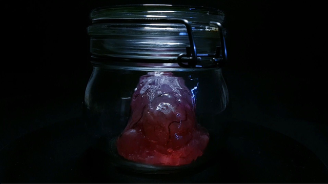 Création du Blob dans un bocal issu de la scène culte de fin du film "THE BLOB" de 1988, où l'on y voit un bocal avec le Blob récupéré par le révérend, attendant un signe divin pour libérer l'apocalypse sur terre.